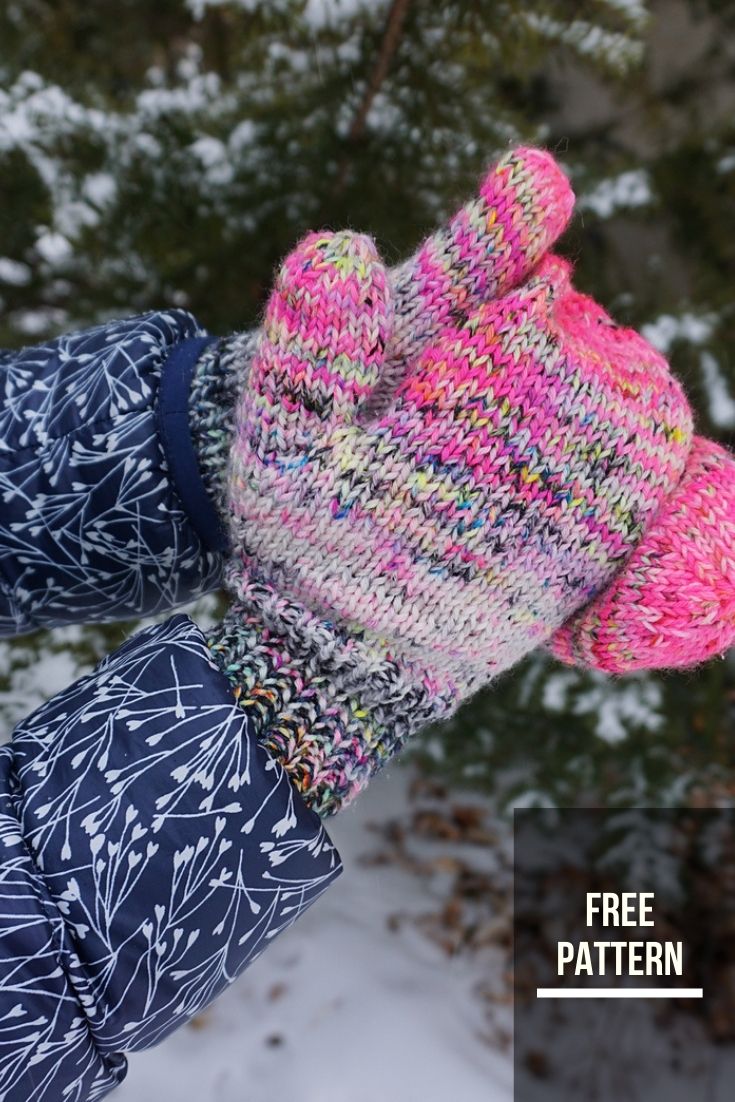 You will be holding two sock yarns together at all times, and will end up switching one out every seven rows. If your leftovers are a little over or under – Never Fear! You will still be able to get the same effect by switching 1/2-1 rows early or late. Just be sure the document what you do on one mitten to match the other!